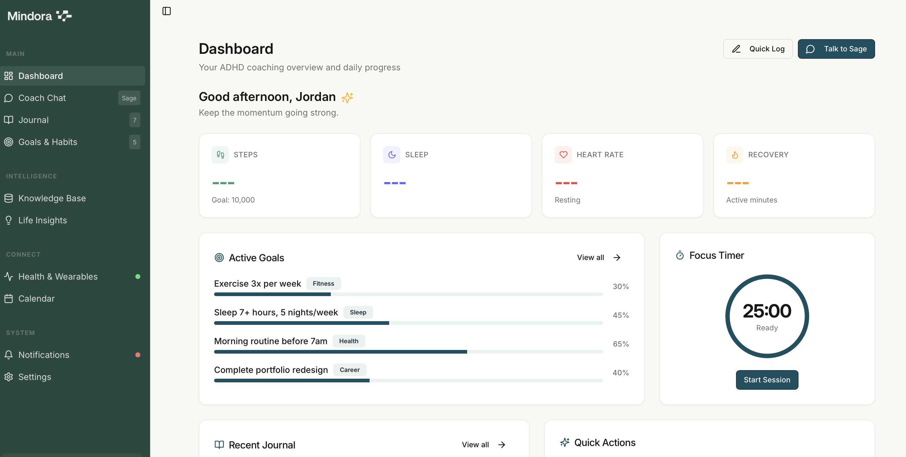 Two AI coaches working together to support every part of your ADHD journey — from focus and planning to sleep and wellbeing.